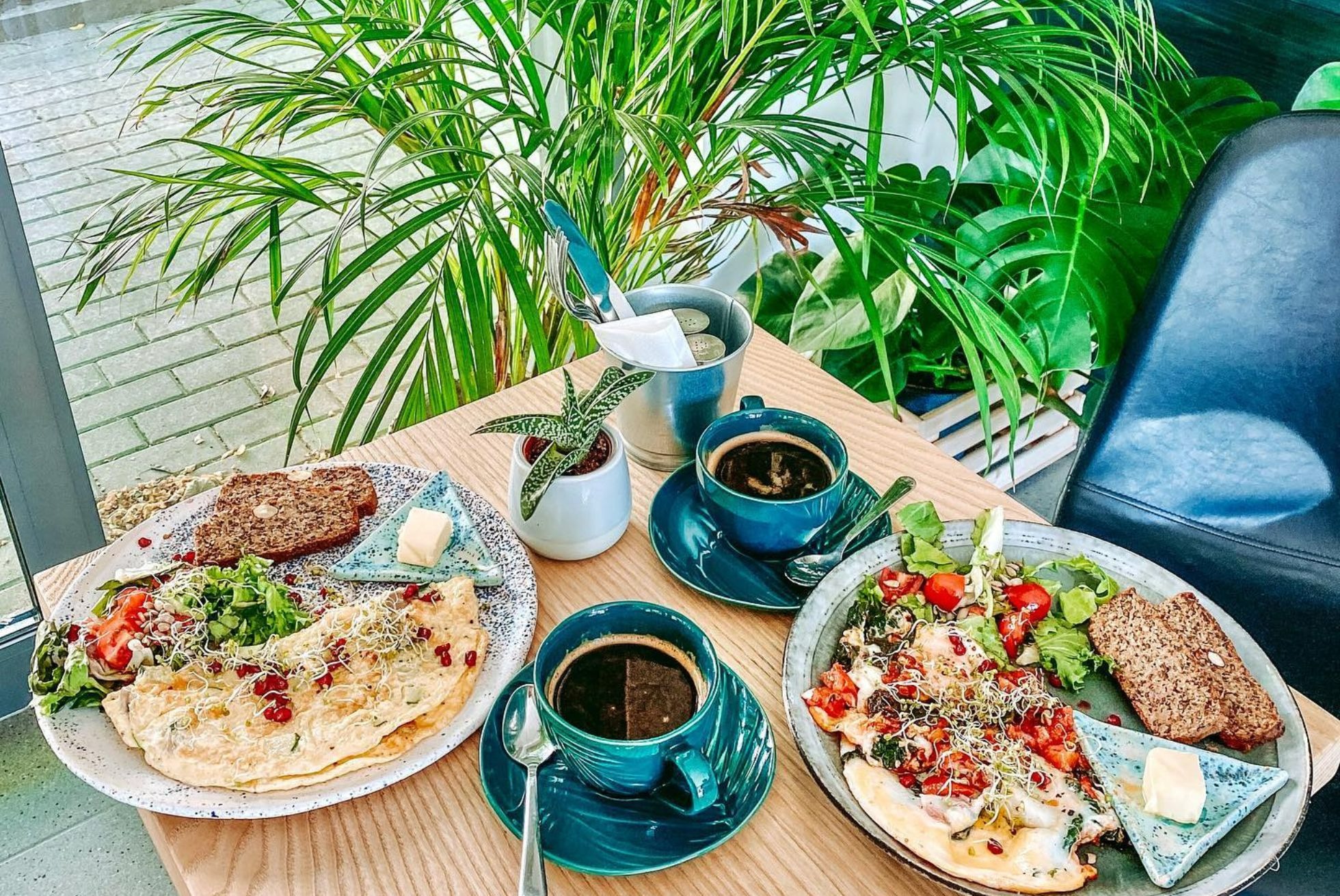 maślana brioche, liście szpinaku, wędzony łosoś, 2 jaja poche, sos holenderski, oliwa z chili i cytryną -